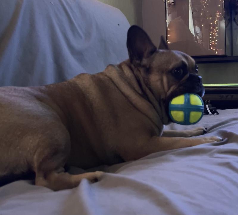 My dogs love this ball- the grips over the tennis ball are perfect for their frenchie mouths and it’s nice they can sit and chew when they retrieve it and I don’t have to worry about the tennis ball being shredded. It’s really easy for them to carry it around, and they love to chase it. It has their approval!