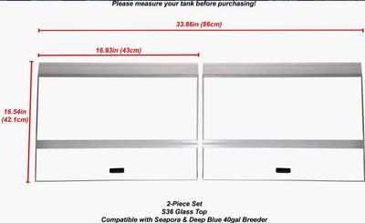 This two-piece set is compatible with Seapora and Deep Blue 40-gallon breeder (sold separately). This tank cover measures 16.93 inches long x 16.54 inches high.