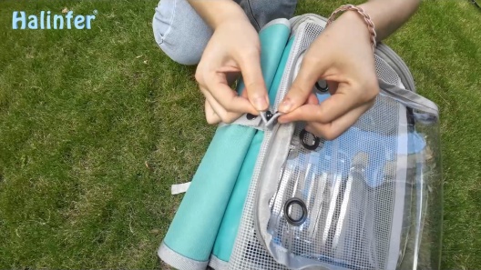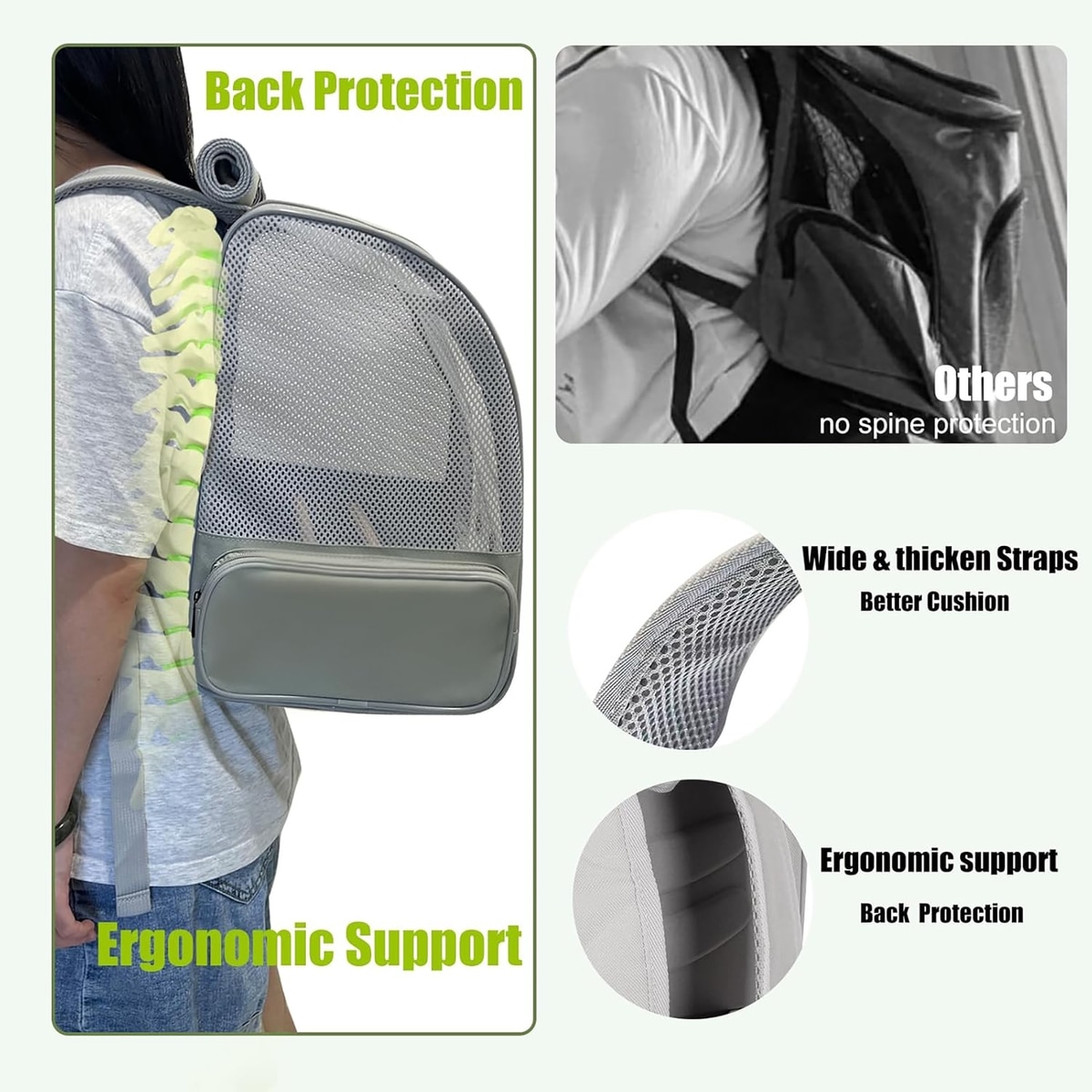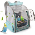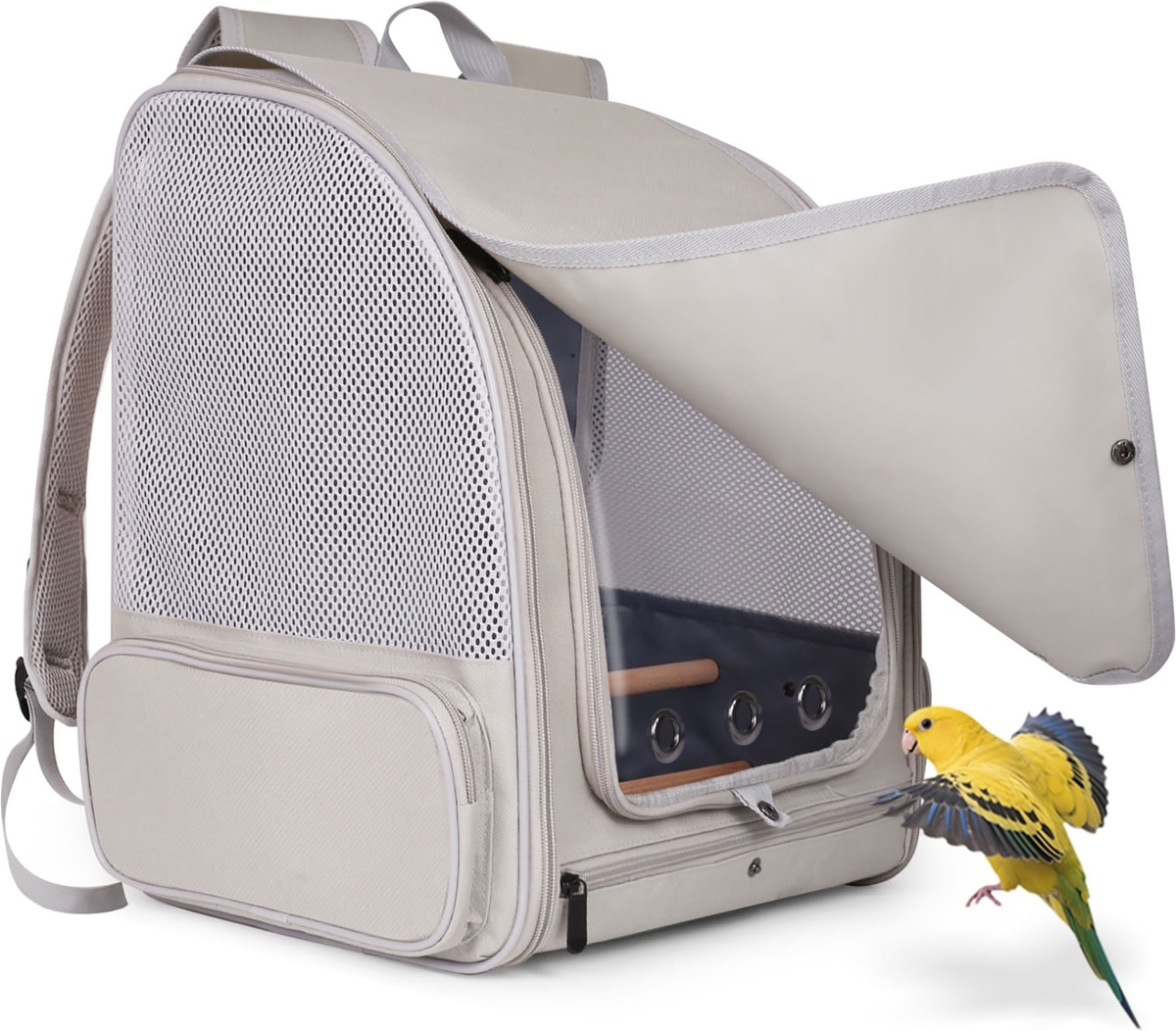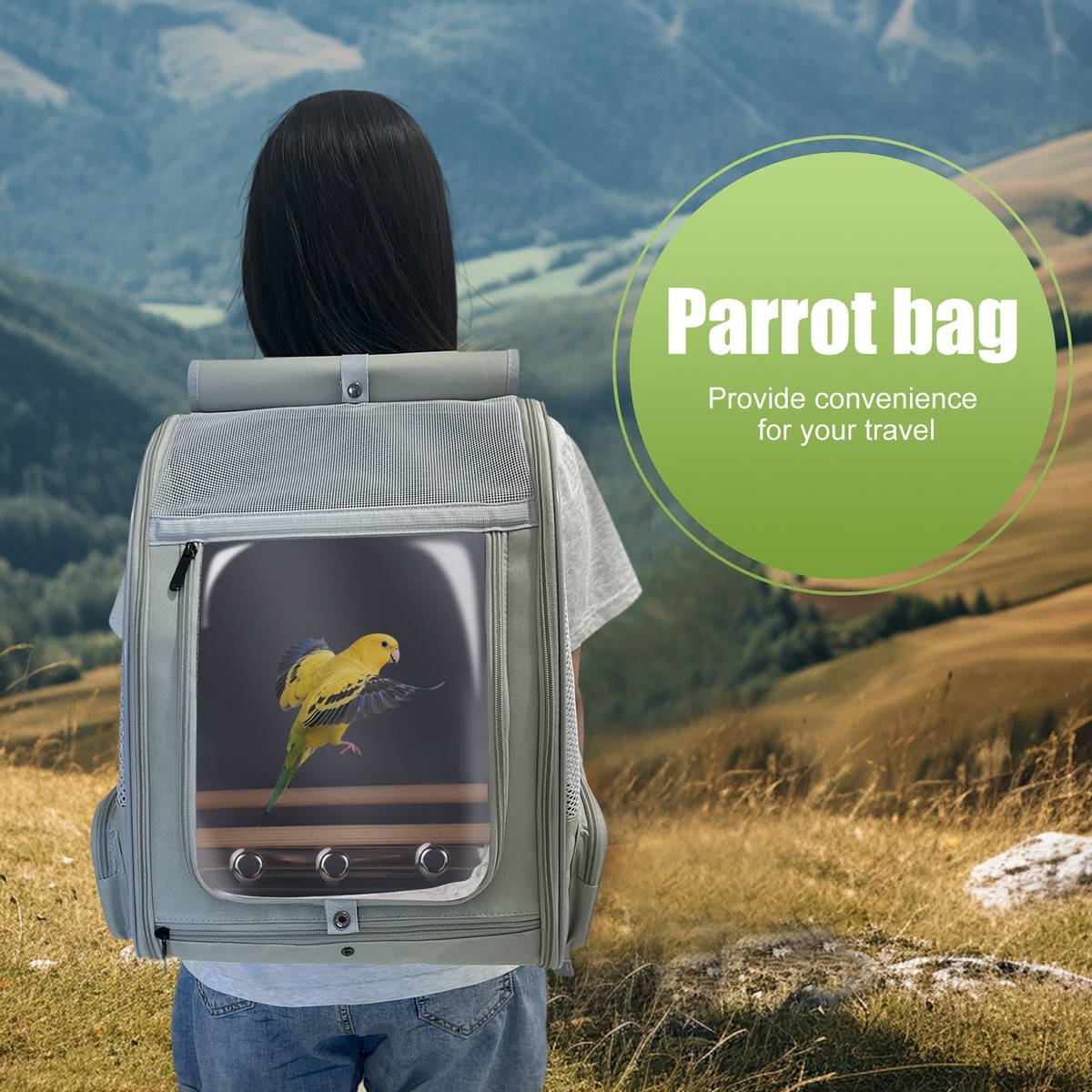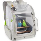 Halinfer Portable Front Zipper Opening Travel Cage Bird Carrier Backpack with Standing Perches & Metal Tray, 15 x 11 x 16-in, Grey