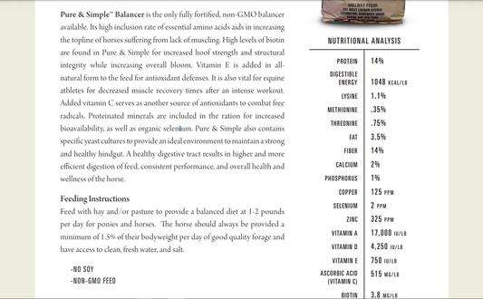 This feed has a Selenium content of 2 parts per million. Please refer to the attached photo for the complete Nutritional Analysis: