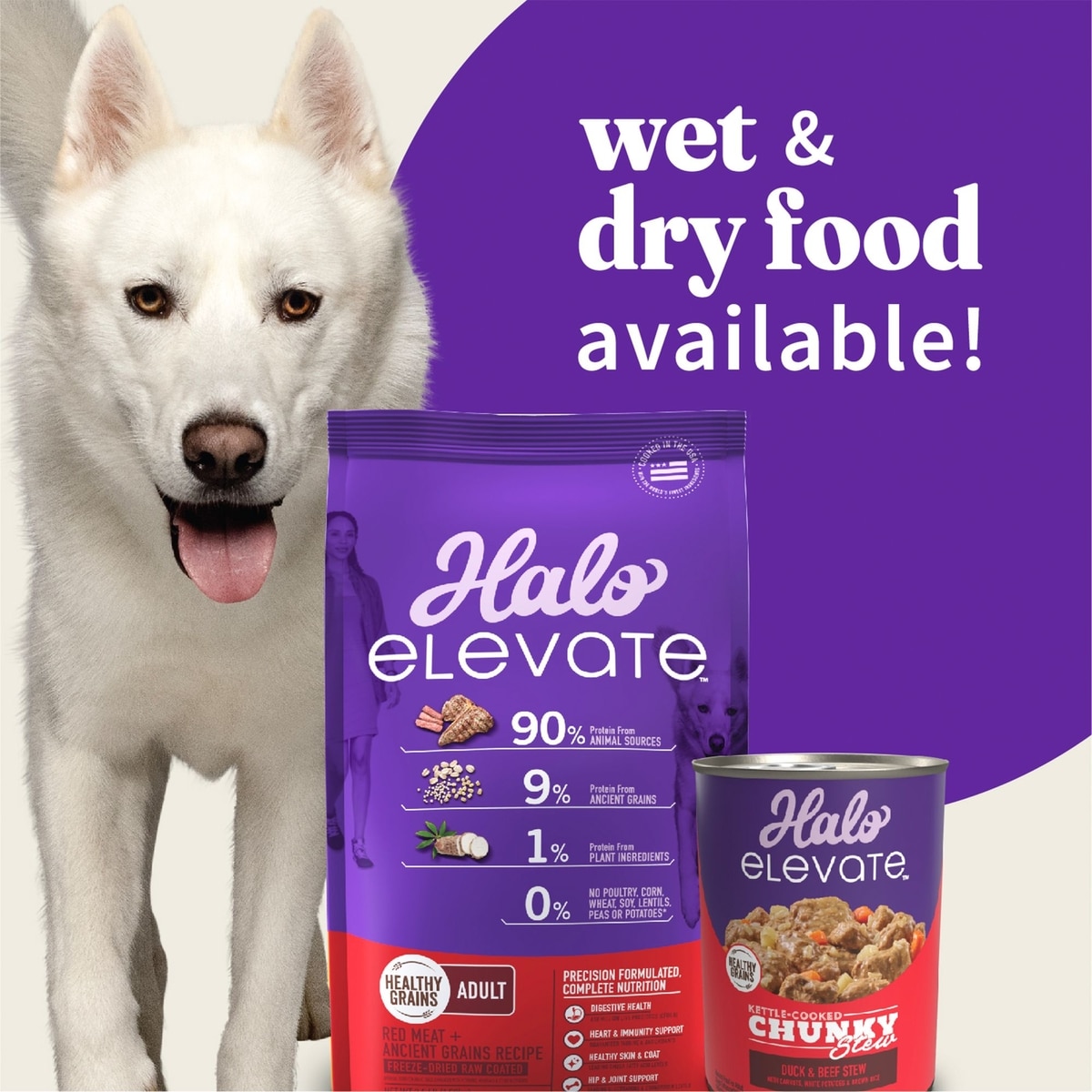 - Halo Elevate Healthy Grains Chicken Recipe Dry Dog Food, 3.5-lb bag$22.99 Chewy Price$25.99 List Price$21.84 Autoship PricePromo, New Customers Only: Spend $49+, Get $20 eGift Card +1 deal