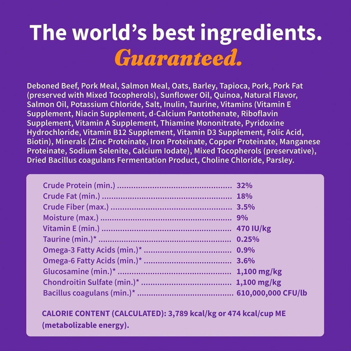 Formulated with 610 million live probiotics (CFU/lb)