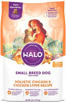 Halo Holistic Chicken & Chicken Liver Small Breed Dog Food Recipe Dry Dog Food Bag, 4-lb bag