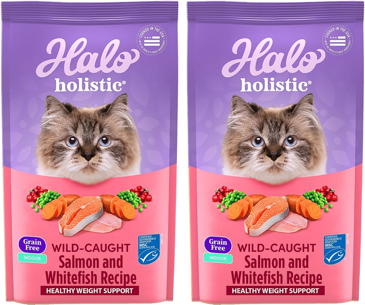 Halo Holistic Indoor Wild-Caught Salmon & Whitefish Recipe Complete Digestive Health & Healthy Weight Support Grain-Free Adult Dry Cat Food, 20-lb bundle