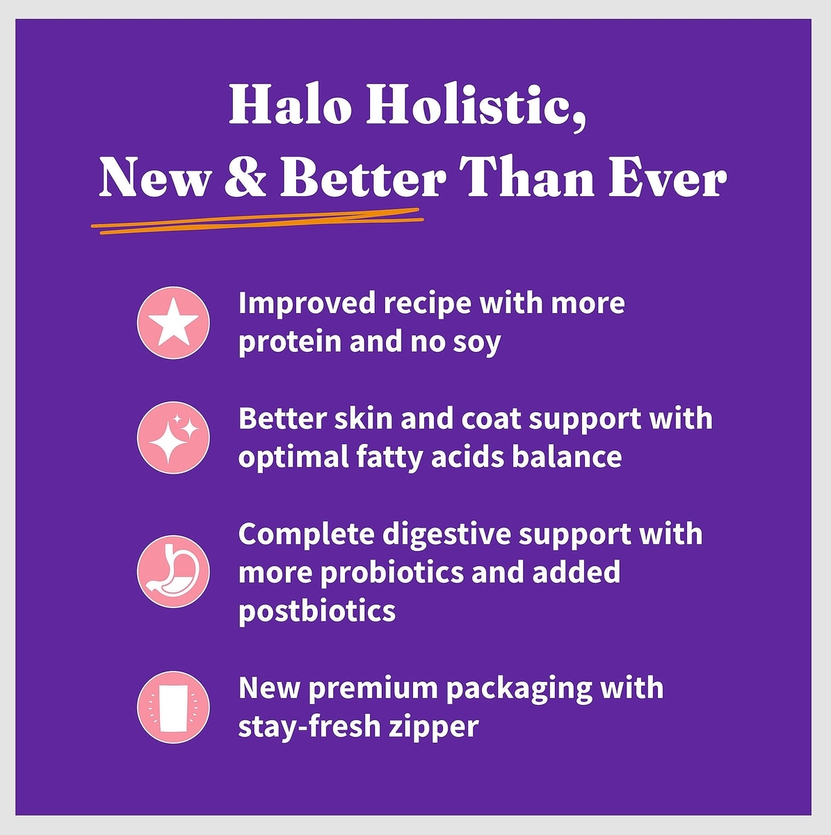 - Halo Holistic Indoor Chicken Recipe Complete Digestive Health & Healthy Weight Support Adult Grain-Free Cage-Free Dry Cat Food, 10-lb bag$56.99 Chewy Price$54.14 Autoship PricePromo, New Customers Only: Spend $49+, Get $20 eGift Card