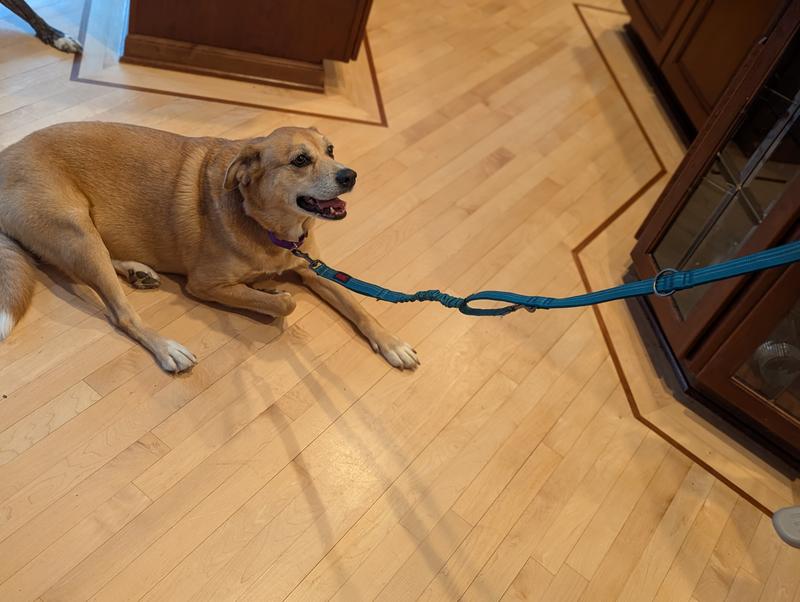 Super high quality leash but there's almost a little too much going on with all of the clips and rings. I like it but it could be a little less busy (haha - all of the busy features is what attracted me to buy it!).