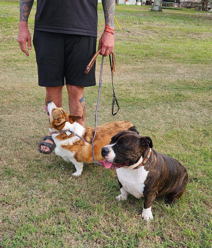I have 3 Labs. 13 yo male (80lbs), 7 yo female (58lbs) and 6 yo female (63lbs). I wanted to try a lead where I could walk two dogs on one lead. First I walked