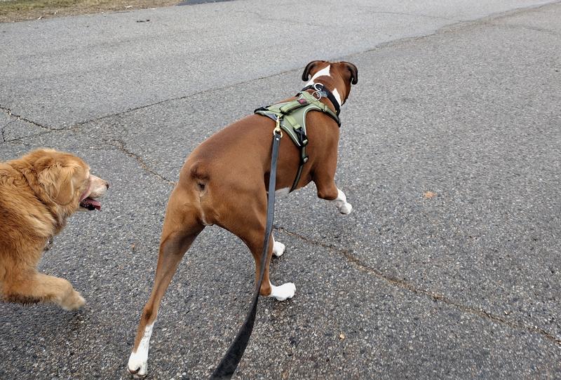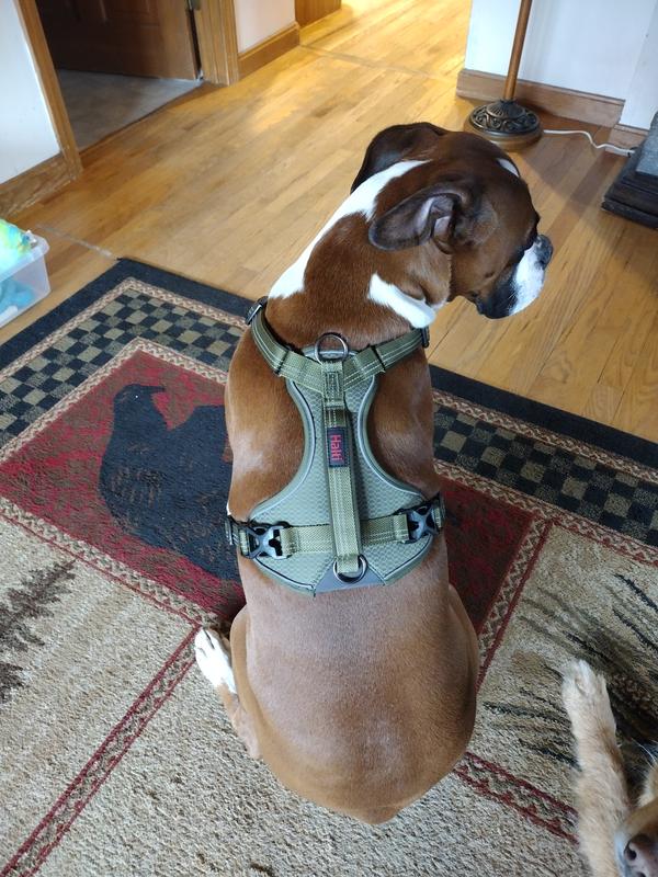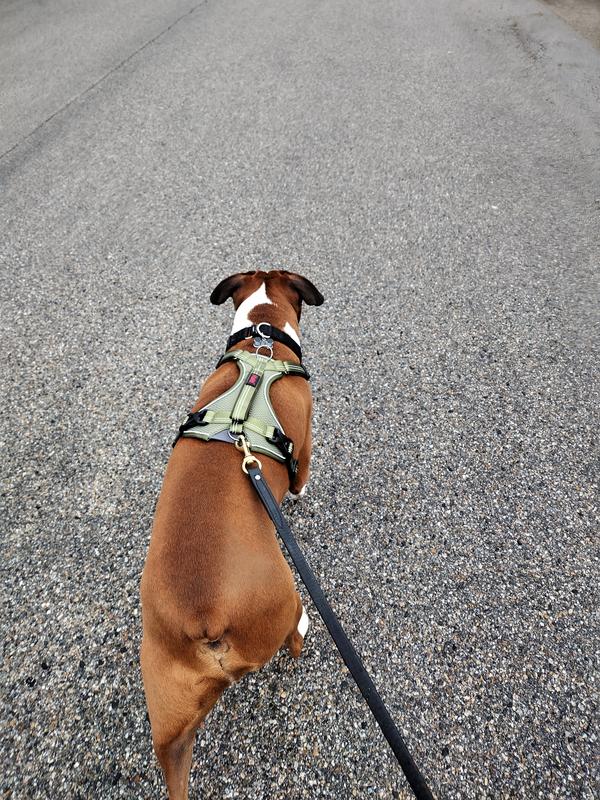 The handle on this harness is designed for close control and steady assistance only, such as guiding or restraining a dog briefly. It is not recommended to lift a dog by the handle, as the harness is not intended to support a dog’s full body weight. If it is ever necessary to assist a dog over an obstacle or into a vehicle, we advise ensuring that the back legs are supported at the same time to avoid placing strain on the dog’s body or the harness itself.
