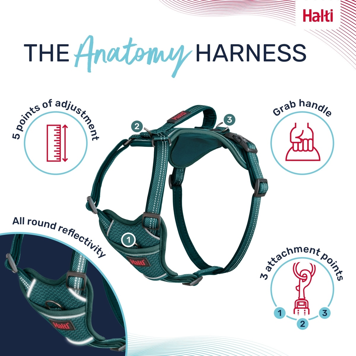Halti Anatomy Reflective Dog Harness, Teal, Small: 15.25 to 22-in chest