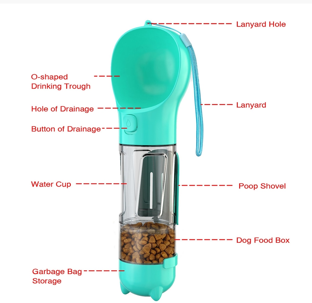 HANAMYA 3-in-1 Travel Bowl, Food Box & Poop Bag Storage Dog Travel Set, Turquoise Blue, 10-oz, 1 count