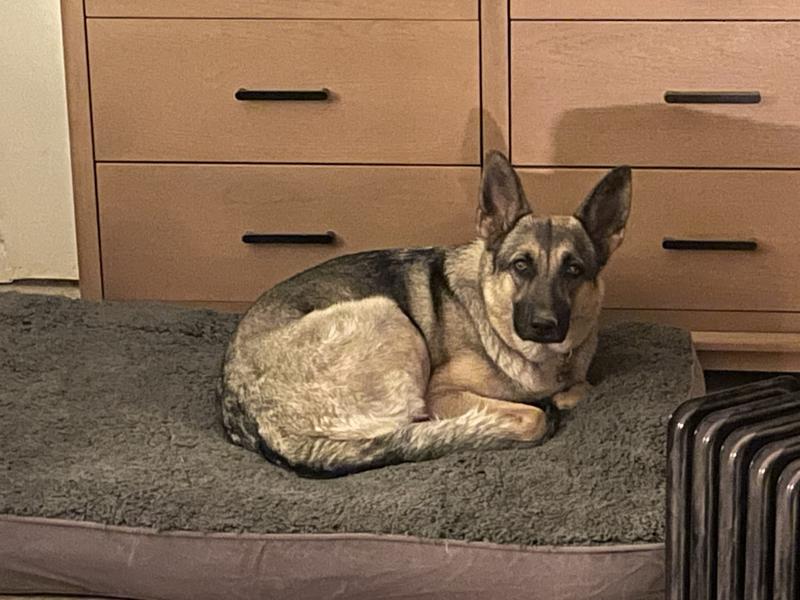 Both of my German Shepherds absolutely love this bed! This is a size Medium in Grey and it is the perfect size for either dog (male is 78 lbs and female is 55 lbs). It has kept its shape well and although it hasn’t needed to be washed yet, it is very easy to unzip and looks sturdy. I’m sure it will last a long time.