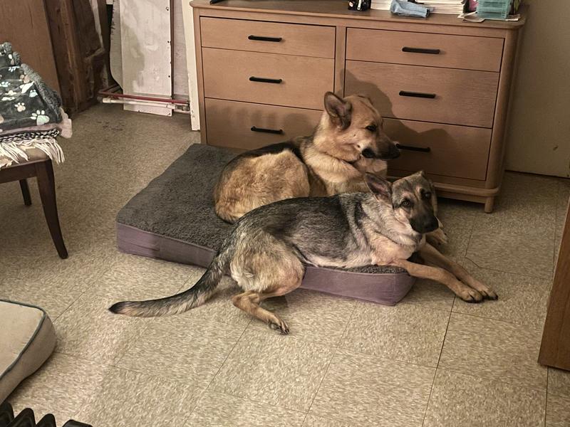 Both of my German Shepherds absolutely love this bed! This is a size Medium in Grey and it is the perfect size for either dog (male is 78 lbs and female is 55 lbs)