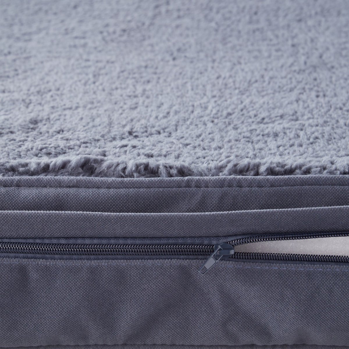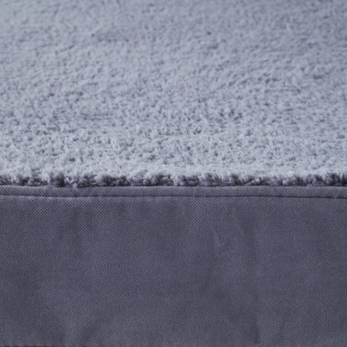- The microfiber fabric reverses to reveal a luxuriously soft sherpa panel—an extra bit of cozy comfort for your best pal!