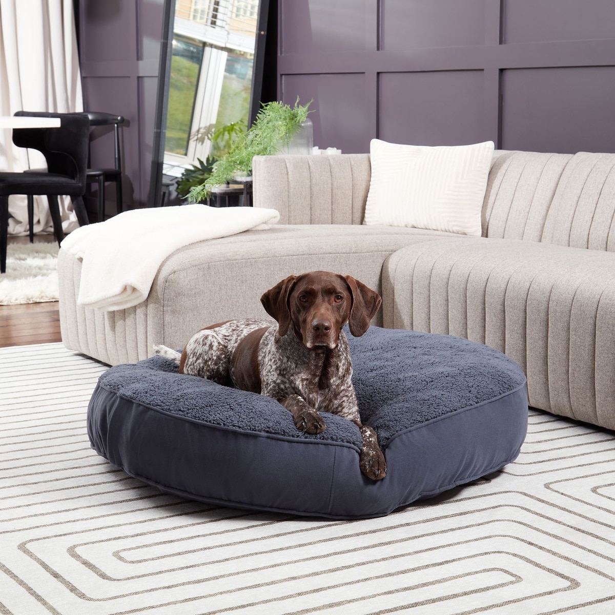 Happy Hounds Scooter Deluxe Round Pillow Dog Bed with Removable Cover, Blue Steel, Large