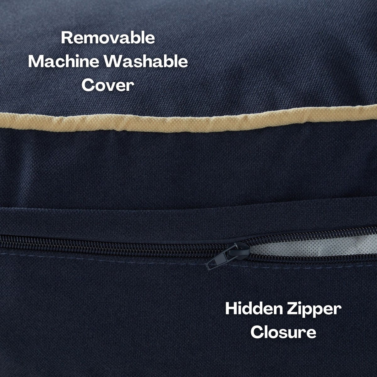 - A zippered and removable cover is machine washable for easy cleaning.