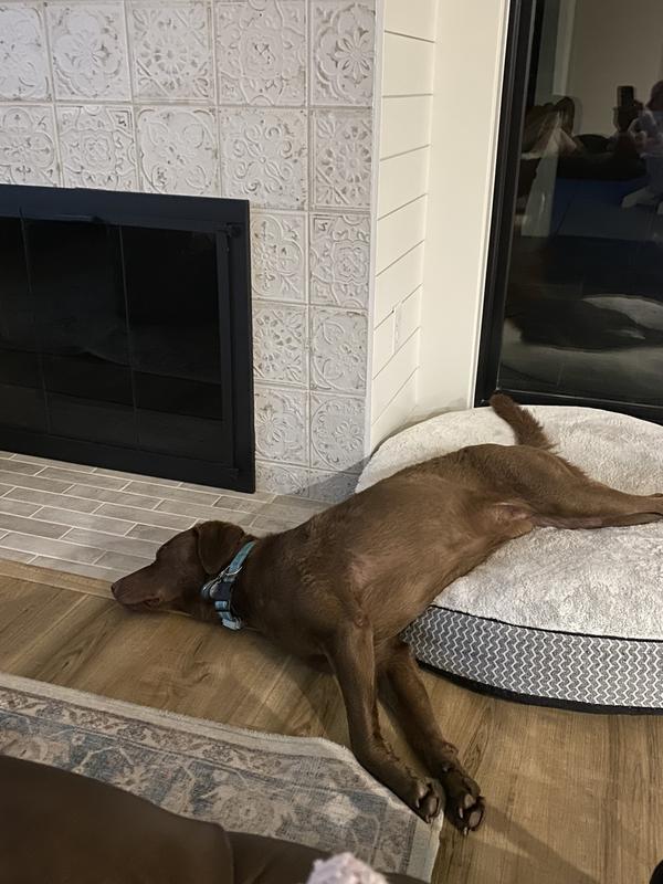 This is a great dog bed. Since it’s stuffed with foam chunks instead of poly filling it doesn’t clump and it holds its shaped and even thickness. Surprisingly the cover is super easy to clean.