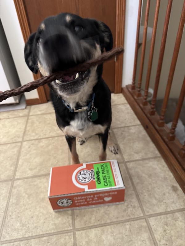 A beefy stick. Give it whole or just a bit. Happy Howie's Natural Woof Stix treats are slow-cooked and shaped like Bully Sticks but made with natural beef in an easy-to-break shape.