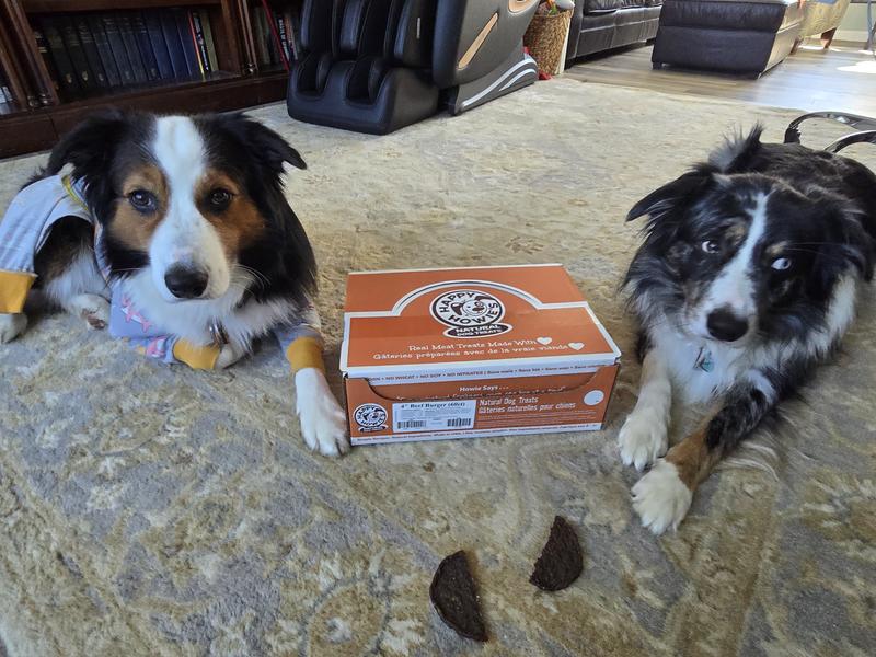 These meaty patties are your dog’s chewing bliss. Happy Howie's Natural Doggy Burgers are made with real, slow-cooked Midwest beef and gluten-free rice flour.
