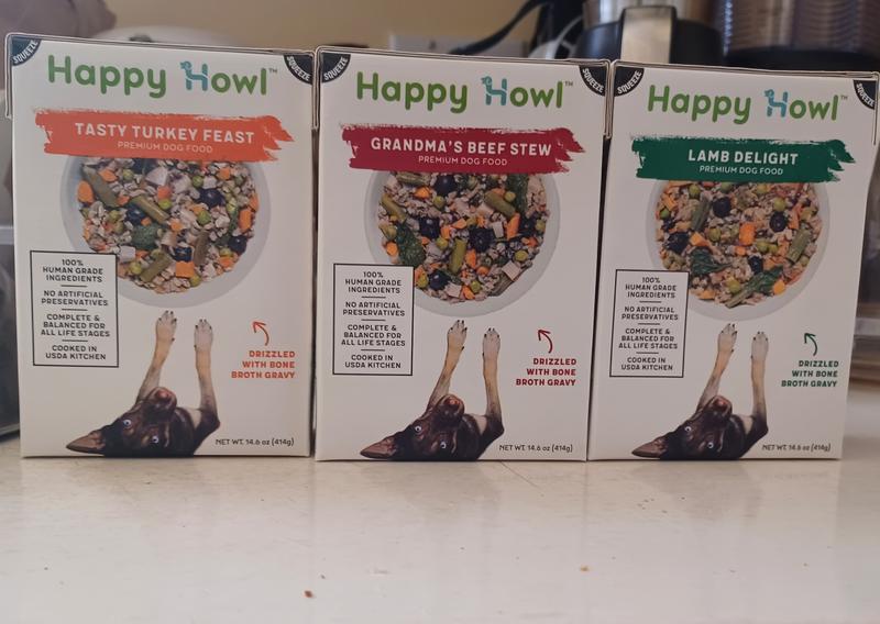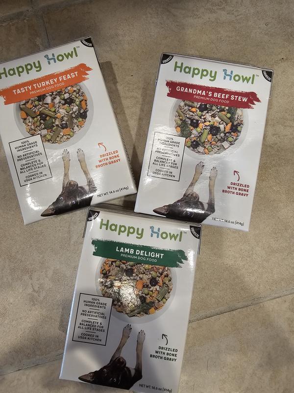 Bundle: Happy Howl Tasty Turkey Feast 100% Human-Grade Wet Dog Food + Lamb Delight 100% Human-Grade Wet Dog Food + Grandma's Beef Stew 100% Human-Grade Wet Dog Food