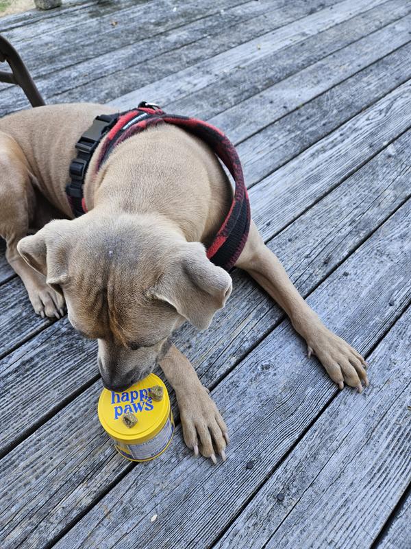 While a puppy will surely spin for Happy Paws, an older dog can’t resist learning a few new tricks, too. Happy Paws tasty, tail-waggin’ supplements are for dogs of any age, from purebred puppies to grizzled mutts and every dog in between.