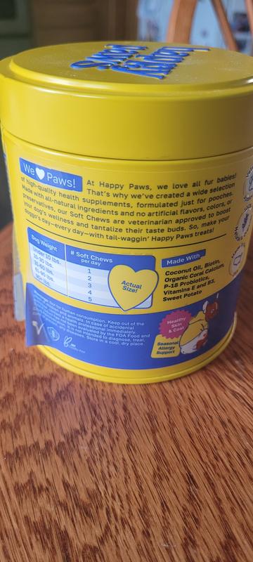 Happy Paws Skin & Coat Soft Chews Supplement for Dogs, 100 count