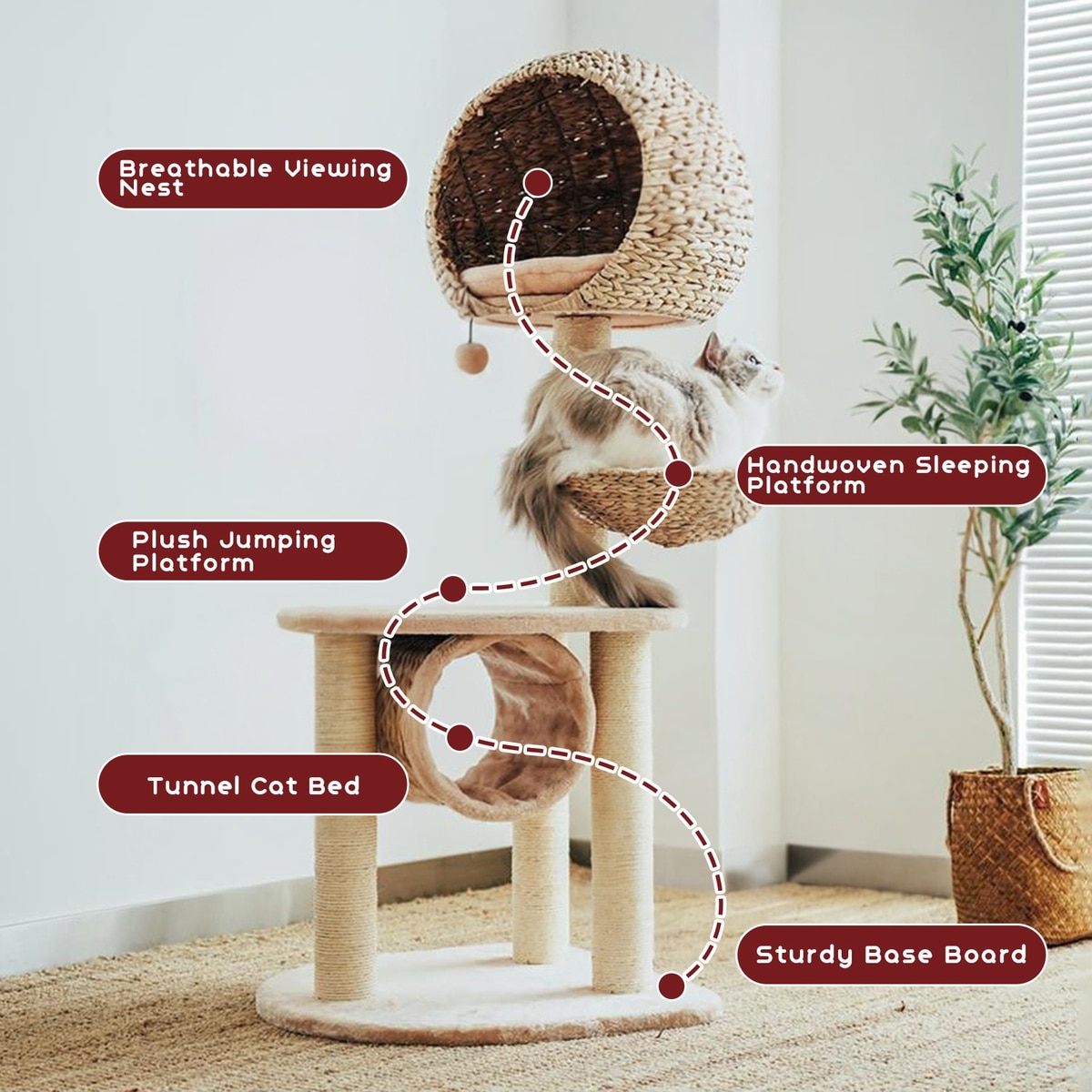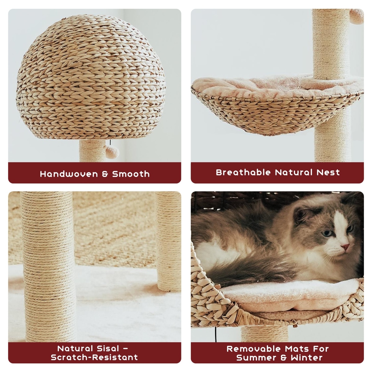 This cat tree includes interactive toys, a 9.8-inch hammock, a cozy nest, and multiple platforms, offering your cat plenty of spots to lounge, play, and explore.