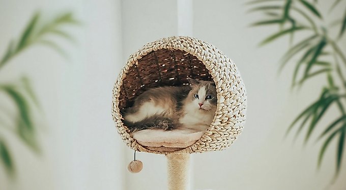 Crafted from breathable natural rattan, the 17.7-inch bed keeps cats under 15 lbs. cool and comfortable.