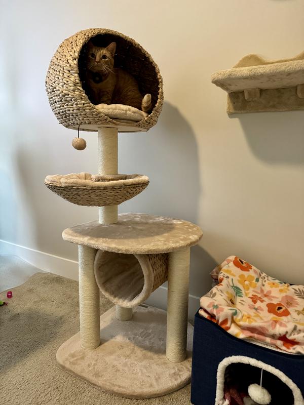 Happy & Polly 51-in Natural Plush Cat Tree, Beige