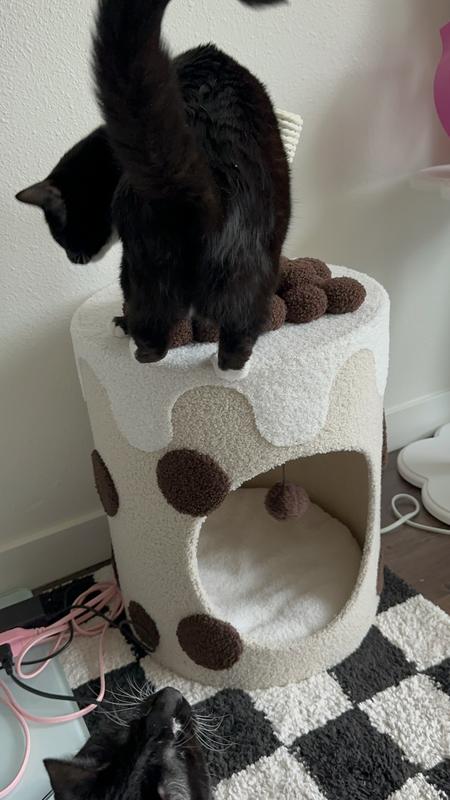 - From the interactive hanging “pearls” to the cozy interior hideout, this haven keeps your kitty entertained and engaged.
