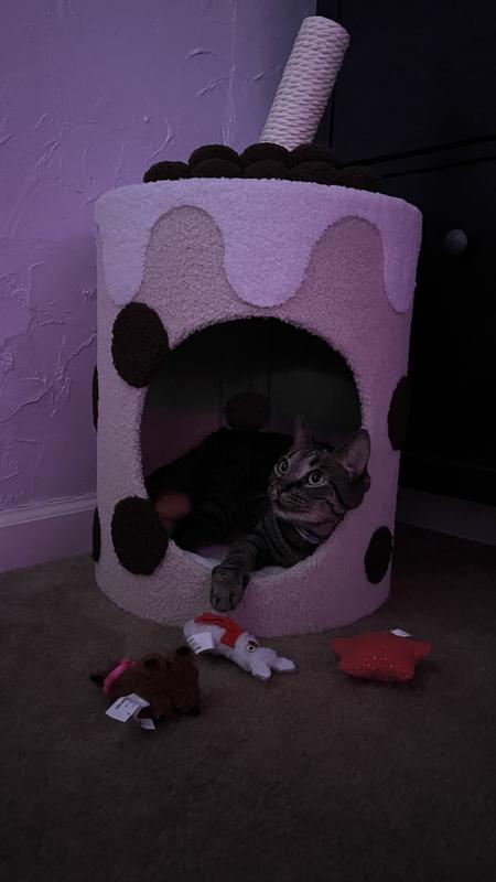 My cat looooooves it! She’s really obsessed with the interactive toy inside! I love how it was super easy to assemble - just had to screw the straw on! The bedding