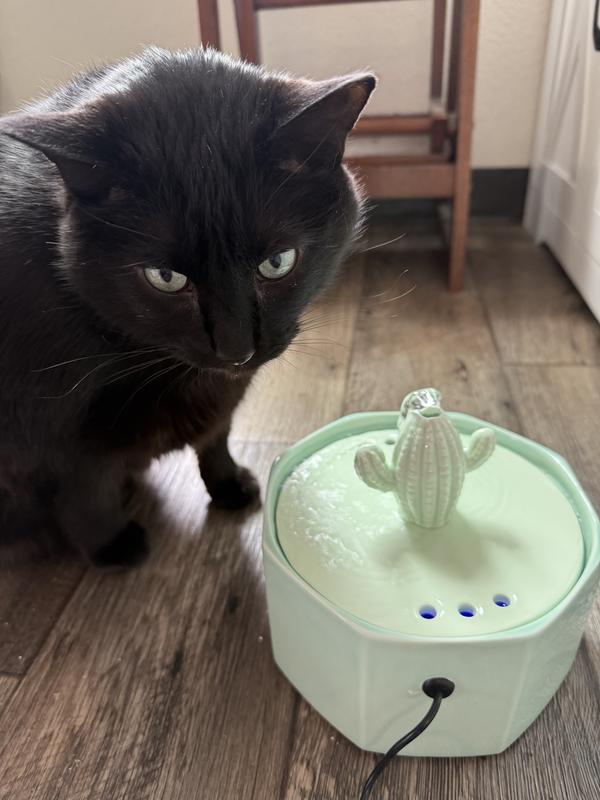 Happy & Polly Cactus Style Ceramic Cat Water Fountain, 1.5-liter
