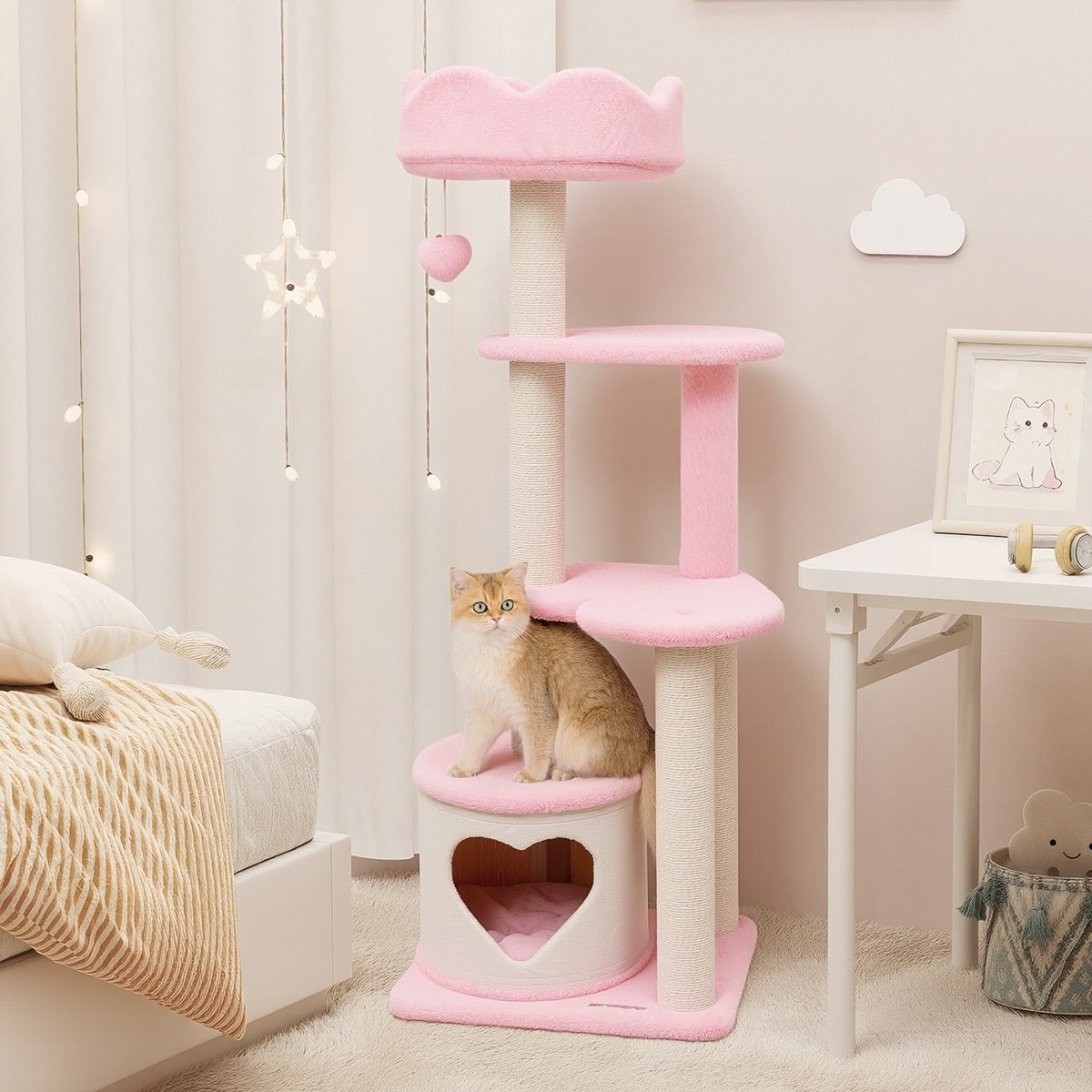 This dreamy cat tree and condo adds a charming accent to your home decor.