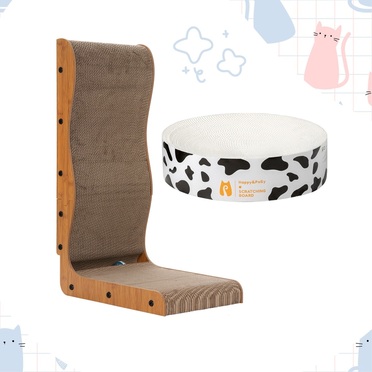 Combines an L-shaped vertical scratcher and a round scratching pad to satisfy your cat’s natural instincts.