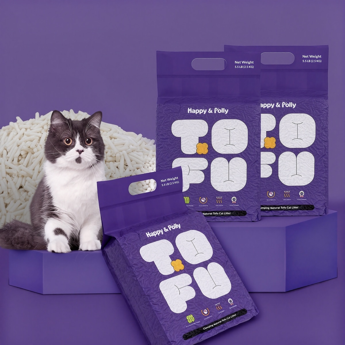 Happy & Polly Natural Tofu Clumping Cat Litter, 5.5-lb bag, 3 count