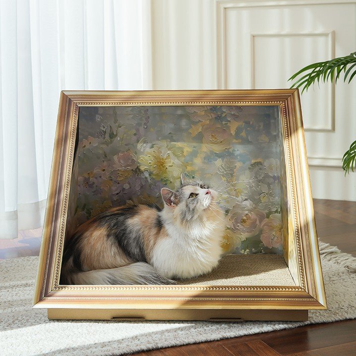 Happy & Polly Retro Art Bloomy Flower Cat House with Scratcher