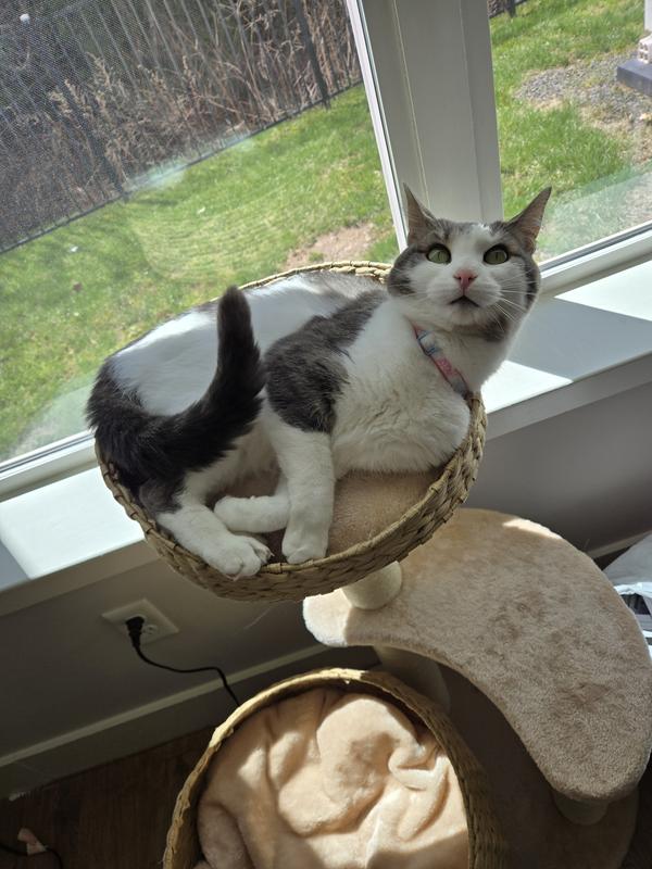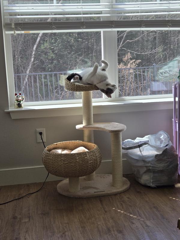 Love it, but top basket could be bigger for my ragdoll kitty. Middle ledge isn’t big enough for him to lay on. Naps in bottom basket.