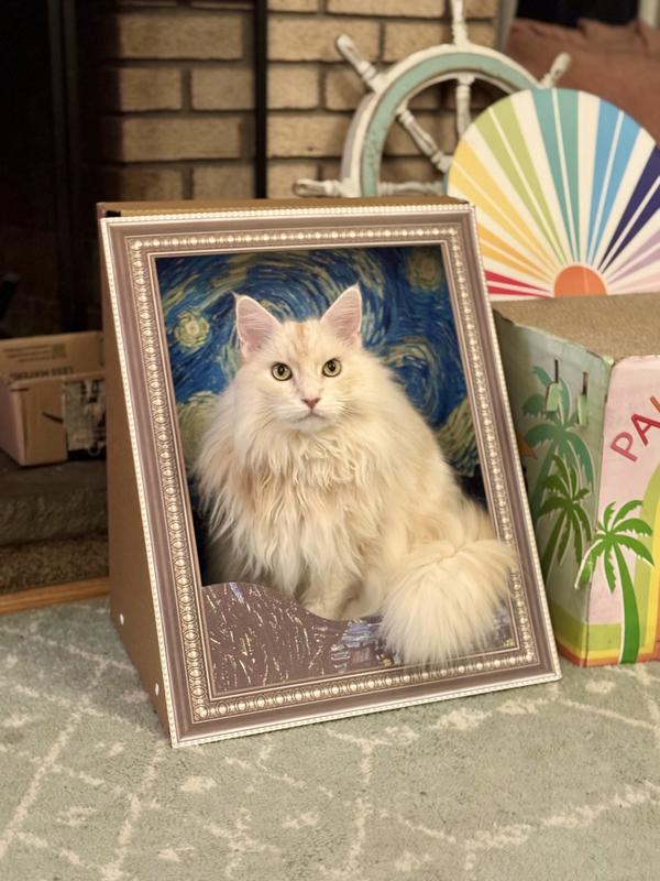 Just like the starry night art , my cat is a work of art. I have a Van Gogh room in my house so the scratcher was a perfect fit and she loves it