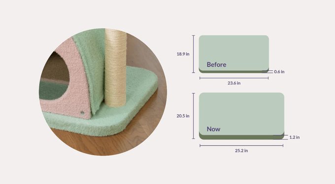 The proportional platform expansion provides more room for your cat's acrobatics, ensuring endless possibilities for play, rest, and observation.