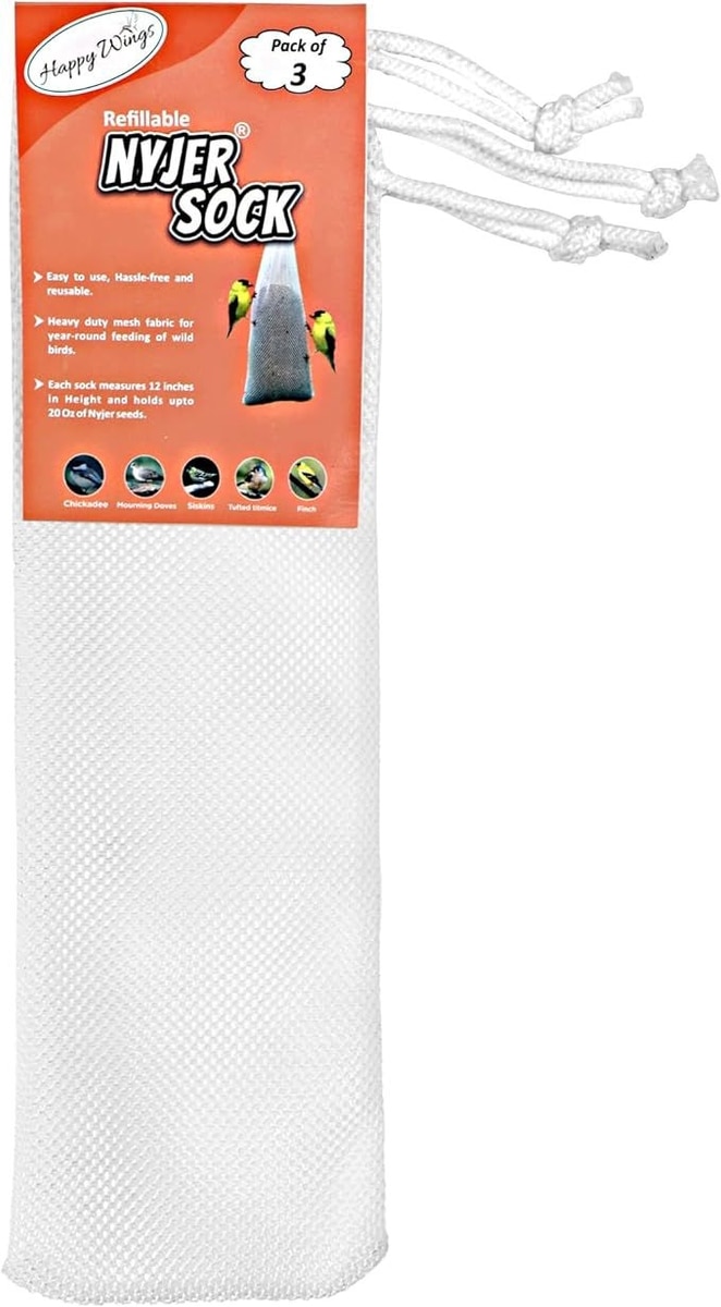 Happy Wings Refillable Nyjer Sock Wild Bird Feeder, 3 count