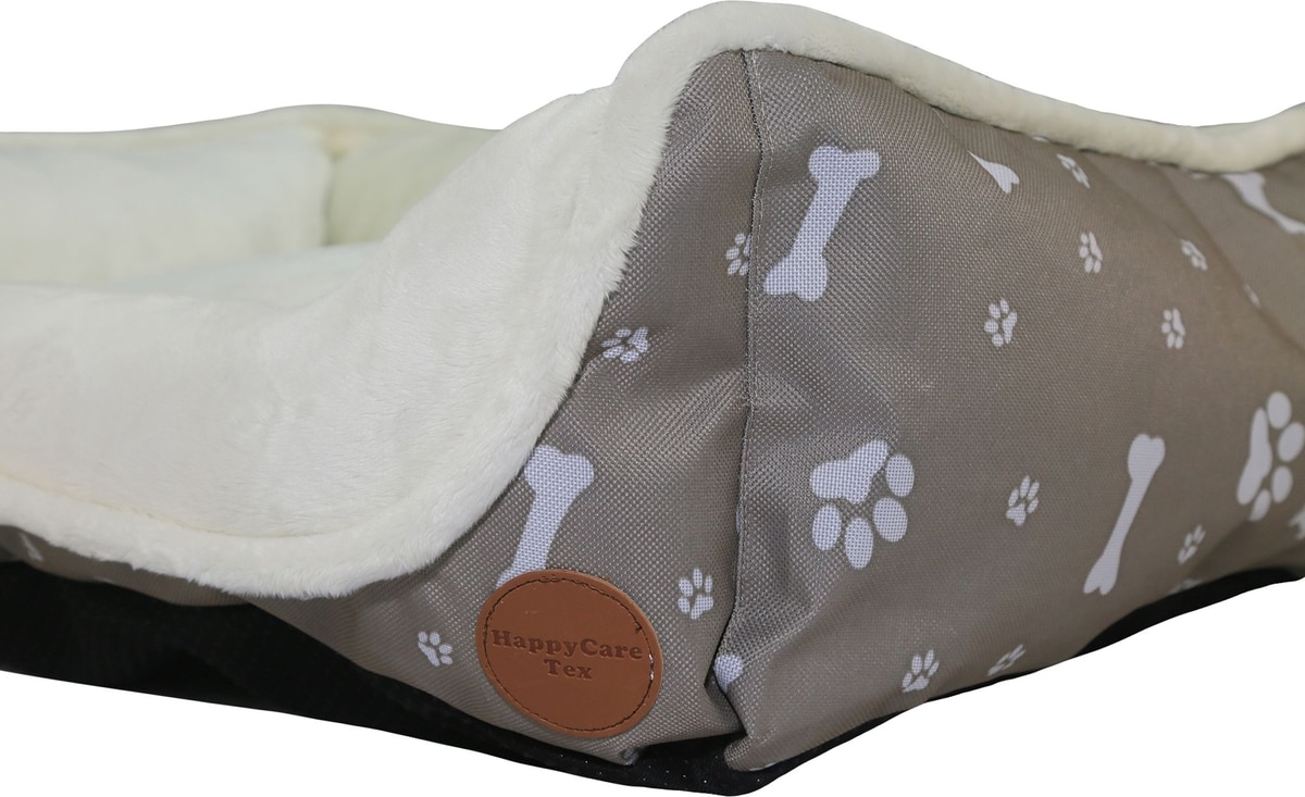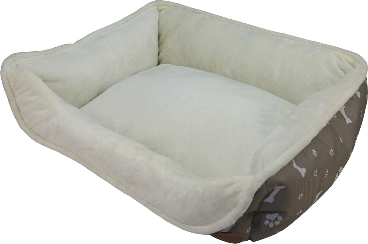 HappyCare Textiles Durable Printed Oxford Plush Bolster Cat & Dog Bed, Grey, Large