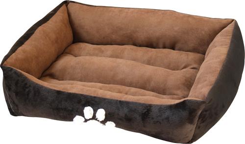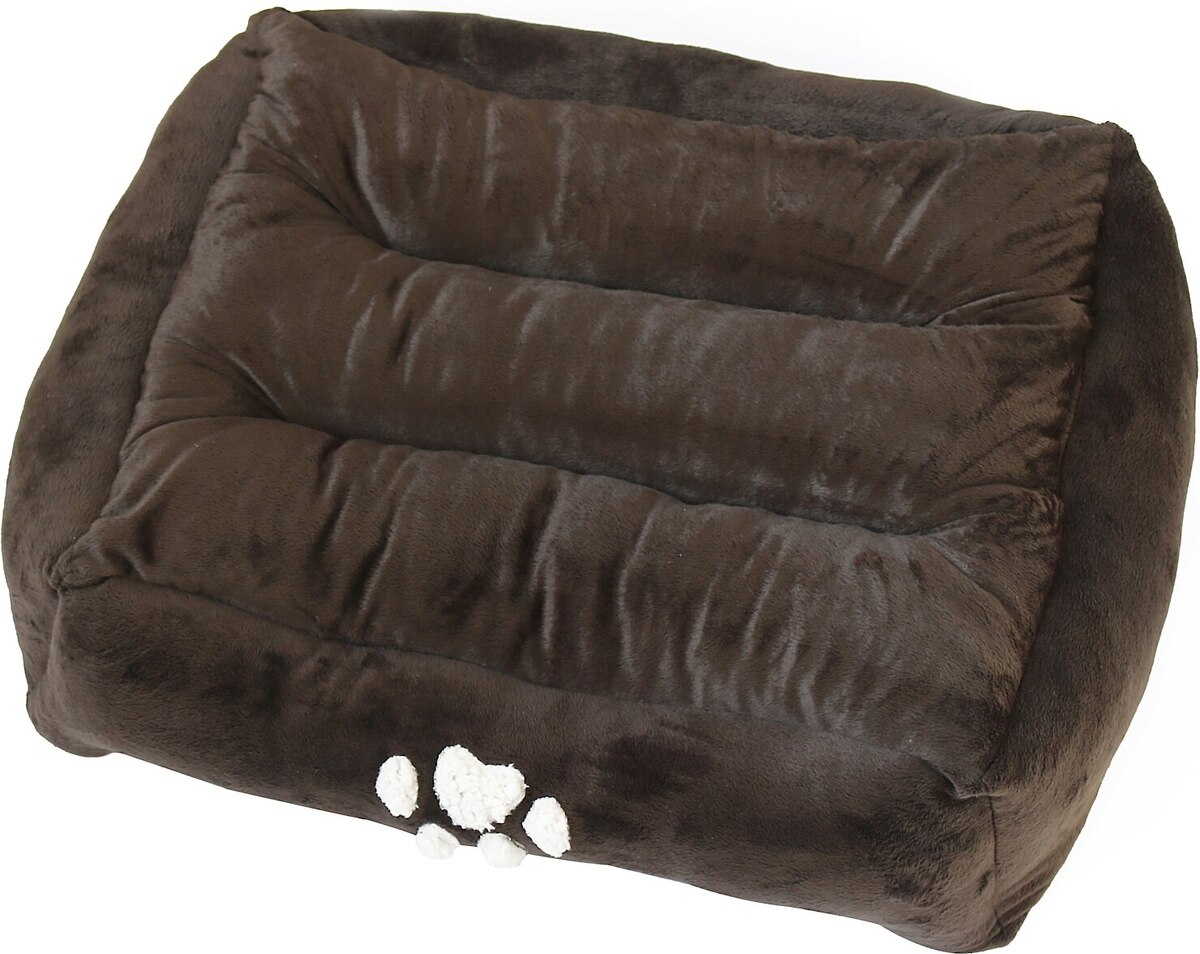 HappyCare Textiles Plush to Suede Rectangle Bolster Cat & Dog Bed, Brown