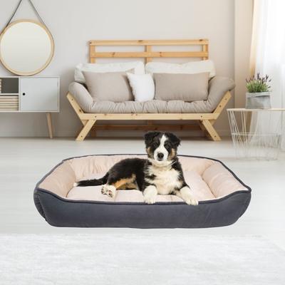 HappyCare Textiles Rectangle Ultra-Soft Bolster Cat & Dog Bed, Burn Out Gray, Large