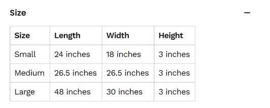 | Large | 48 inches | 30 inches | 3 inches |
