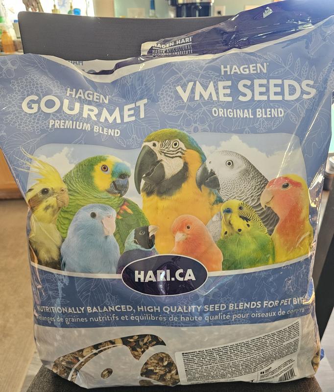 To keep your pet bird healthy, the water and seed cups should be cleaned daily and unsoiled food should be replenished as needed. When introducing a new food, do so gradually by replacing current seed with Hagen Gourmet in small increments. Some birds may select their favorite ingredients from their food. Supplementing with a vitamin and mineral supplement such asPRIMEis recommended. Providing a small amount of fresh greens daily is also recommended.