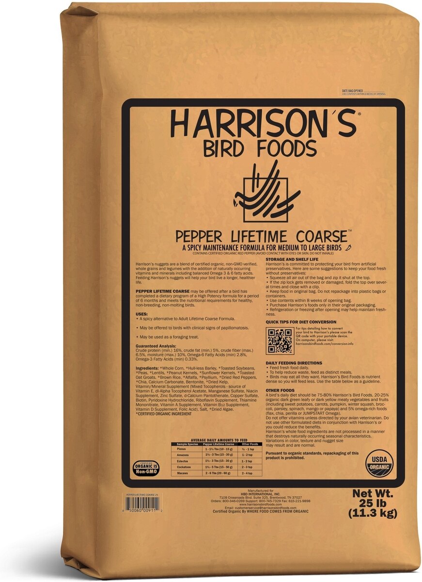 Harrison's Bird Foods Pepper Lifetime Coarse Organic Pellet Bird Food, 25-lb bag