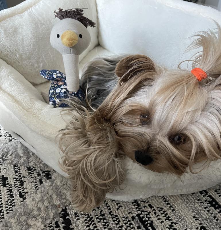 After we bought this toy for our pup Astro he has been keeping it next to his bed all day and night! Whether he's tugging the Ostriches wacky hair or just cuddling