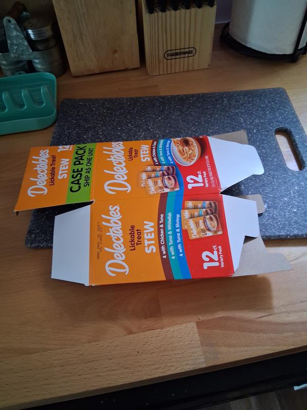 - Hartz Delectables Lickable Treat Stew Variety Pack Lickable Cat Treats, 1.4-oz pouch, 12 count$12.94 Chewy Price$14.23 List Price$12.29 Autoship PricePromo, New Customers Only: Spend $49+, Get $20 eGift Card
