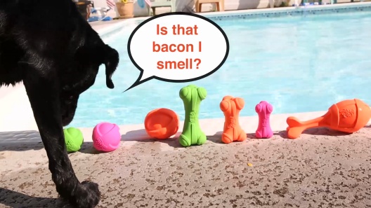 • Bacon scented to entice your dog to chew on their toy and not the furniture.