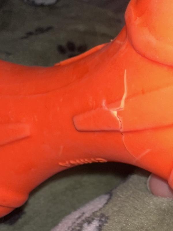 I purchased the three pack of these rubber bone toys because my new puppy decided she liked a toy left from my previous dog. That toy was 10+ years old and only recently showed signs of wear. This new bone toy did not last 24 hours before it has a large gas in it. Very disappointing.