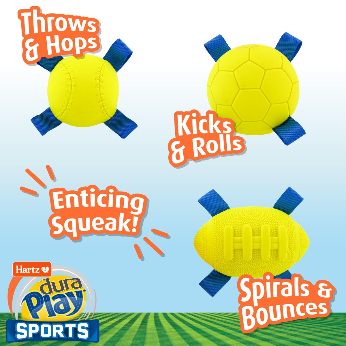 Hartz Dura Play Sports Ball Variety Dog Toy, Yellow & Blue, Bacon Scented, 3 count